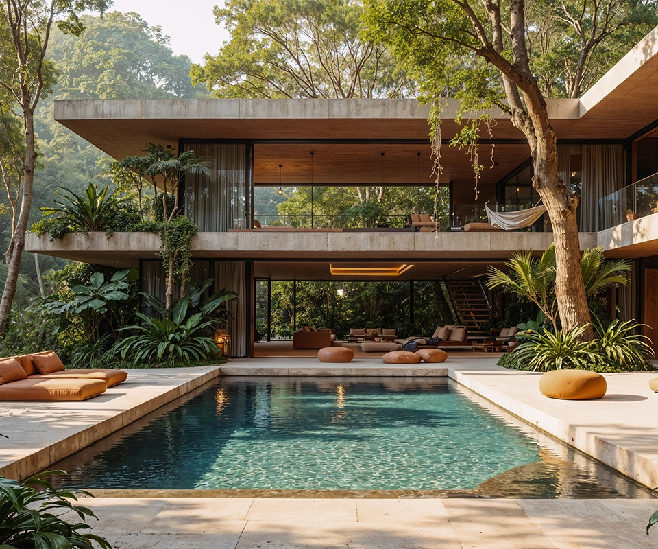 Pátio com piscina